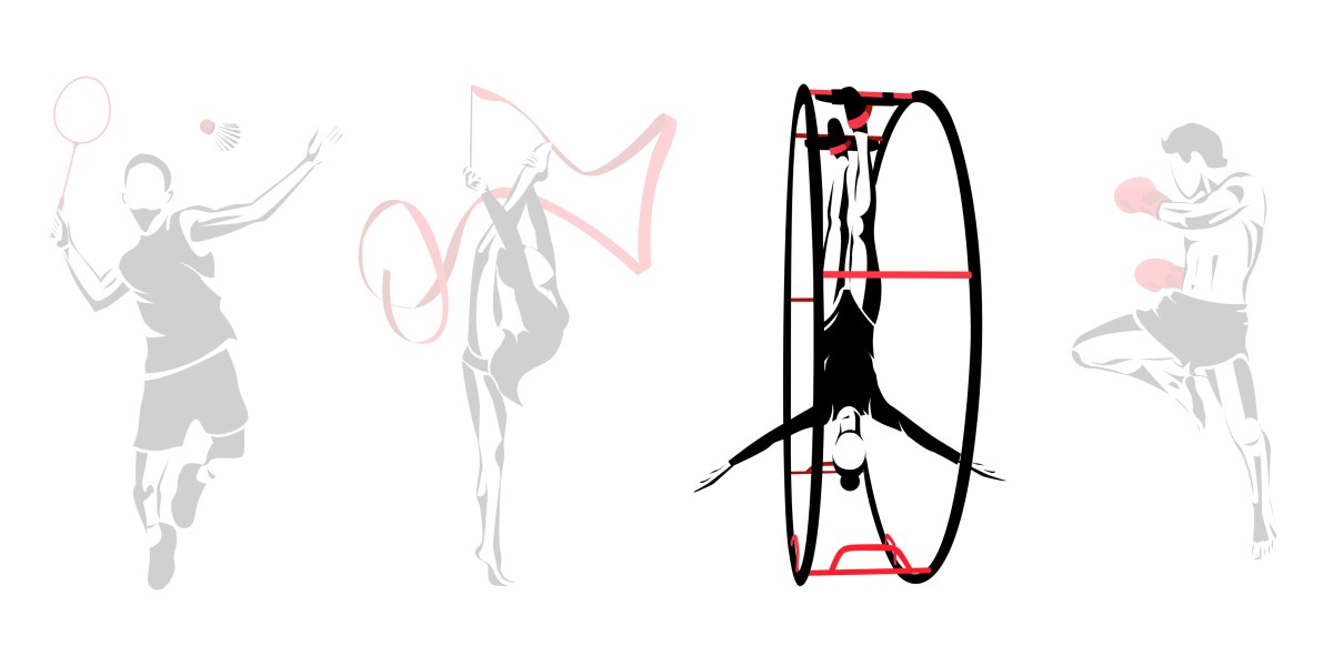 ענף התעמלות גלגלי ענק, במקור מגרמניה, 1925. בענף ספורט זה הספורטאים מופיעים ומתחרים בתרגילי התעמלות תוך כדי שימוש במכשיר ה"גלגל", בעזרת שילוב של כוח, טכניקה וגמישות. הגלגל עשוי משני חישוקים שווים בגודלם, עשויים פלדה ומצופים בפי.וי.סי ומחוברים זה לזה על ידי מספר מוטות שווים וידיות.